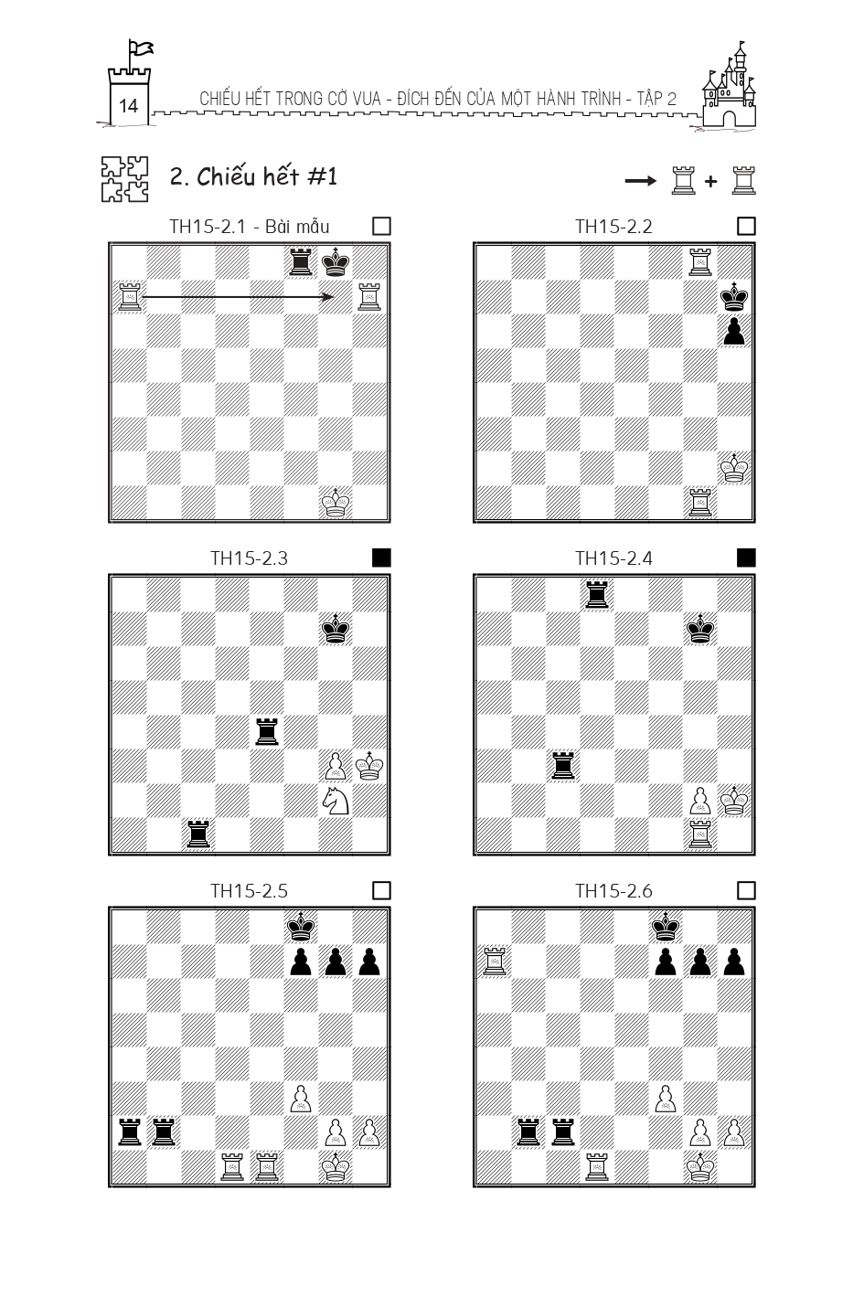 - Tập 2 bao gồm 13 bài học về Chiếu hết bằng 2 quân cờ